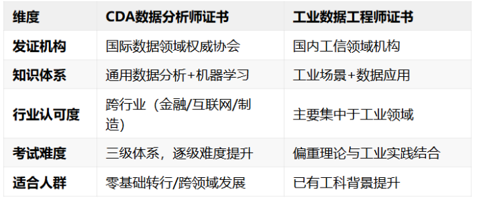 最重要的是,它不限制专业背景,适合零基础学习者跨行转型。如果你尚未确定是否深耕工业领域,CDA无疑是更稳妥的选择。