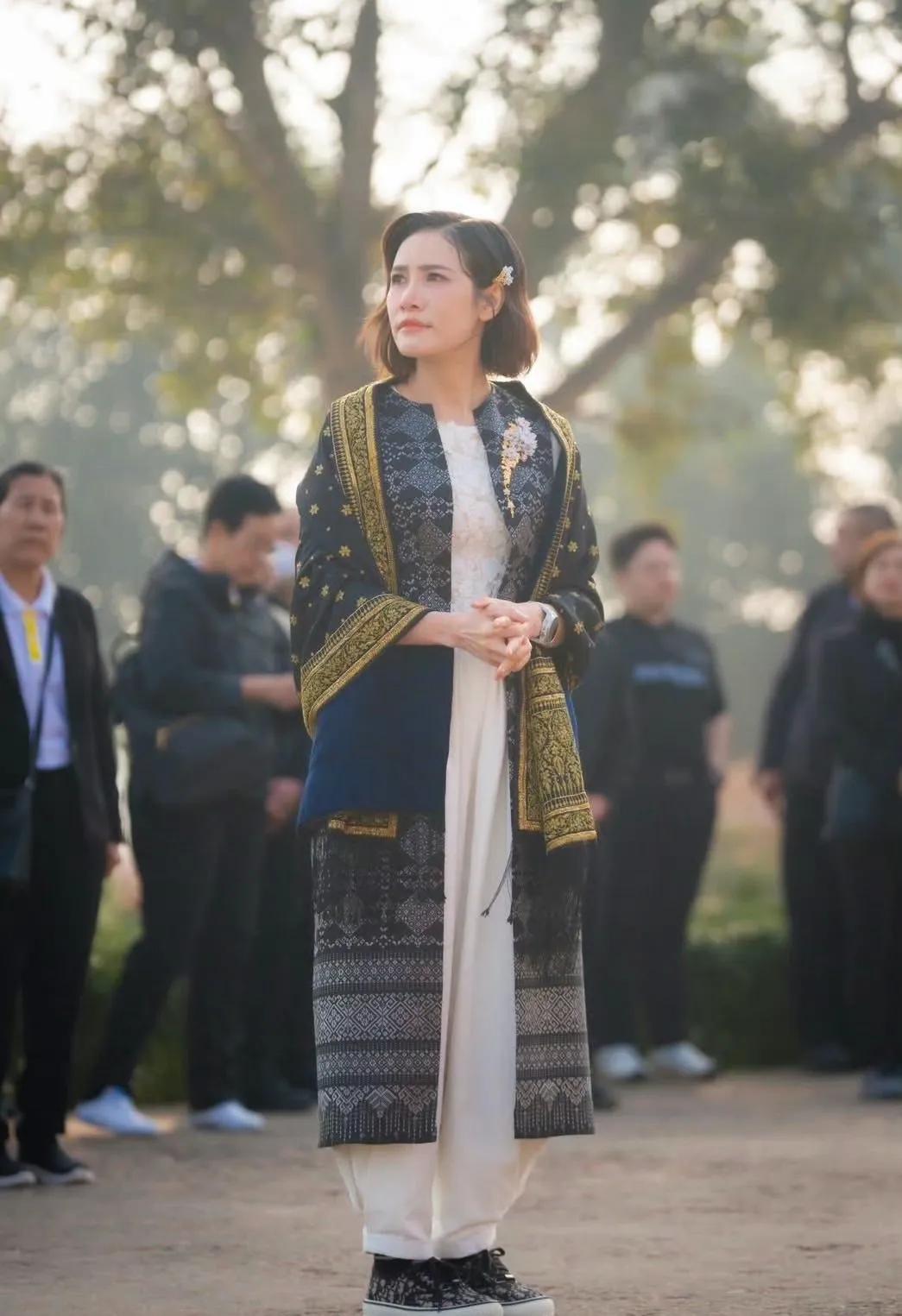 她骨子里还是那个爱美的女人,即使身穿孝服,她依旧穿出自己的审美。