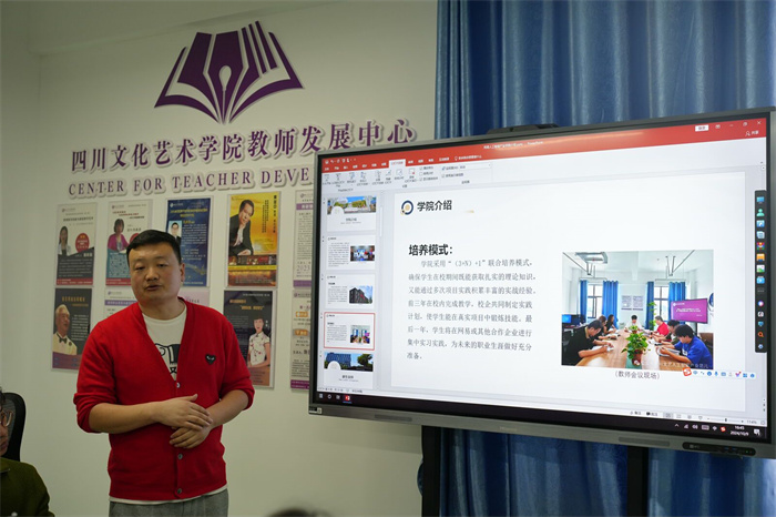 梁宝堂从校园环境、建筑风格、专业建设等方面对于梓潼校区进行了全面的介绍。介绍了学校通过推行“大课堂、大舞台、艺术与科技结合、课堂与工作室结合、实践与产业项目结合”的新时代应用型人才培养模式来培养学生。