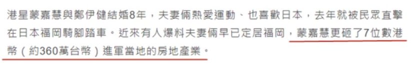 此前还有媒体曝出他代言内地某网游代言费高达七位数因为郑伊健本人就很喜欢打游戏再加上不错的粉丝号召力早些年不少网游公司都想请他来做代言人。而妻子蒙嘉慧在日本开的房地产公司也是他花钱投资的虽然外界一直传日本近两年房地产生意大幅下滑猜测郑伊健和蒙嘉慧的公司业务也有损失但不管如何他依旧身家不菲即使久居日本一直不工作也足够晚年过的惬意自得了这些年不少港星北上发展而郑伊健的好兄弟陈小春上了许多内地综艺一些网友还说相比起来郑伊健稍显“过气”。但其实久居日本不工作的郑伊健早就实现了财富自由过着喜欢的简单生活这未尝不是另一种“圆满”。