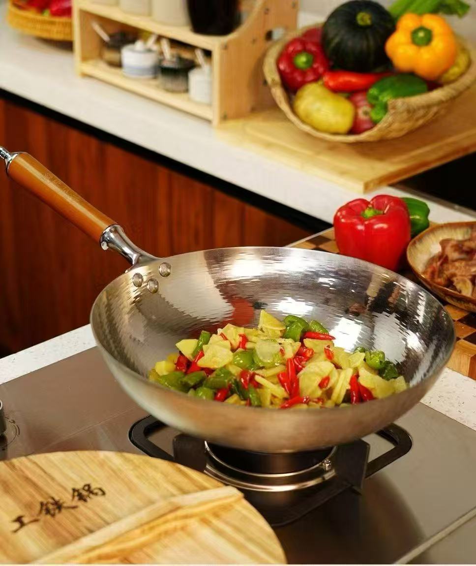 匠合锤铁锅的品质,从选材到制作,每一步都透着 “匠心”。它没有采用机器批量冲压的粗糙工艺,而是坚持以传统手工锻打为核心,再融入现代品质管控,让每一口锅都经得起时间的考验。原料上,匠合锤铁锅精选高纯度熟铁,这种铁含碳量适中,没有杂质,韧性还强 —— 既不会像生铁那样容易脆裂,也不会像劣质铁锅那样释放有害物质影响口感。制作过程更是耗时耗力:12 道手工锻打,每一次锤击都由经验丰富的工匠把控力度和角度,让铁料在反复捶打中变得越来越致密,最终将锅身厚度精准控制在 2.5mm 的黄金比例。这个厚度是经过无数次试验得出的最优解:既能快速导热,让热量瞬间遍布整个锅体,又能牢牢锁住温度,避免局部过热导致糊底,就算是新手炒菜也能轻松掌控火候。7 次低温回火处理,是匠合锤铁锅 “抗造” 的秘诀。通过多次低温加热与冷却,铁料内部的应力被充分释放,让铁锅变得格外坚韧 —— 日常颠勺、不小心碰撞,甚至偶尔用铁铲用力刮擦,都不会出现变形、开裂的情况。最后再经过 5 遍精细抛光,锅身内壁变得光滑细腻,不仅减少了生锈的概率,还能避免食材粘连,让烹饪更省心。