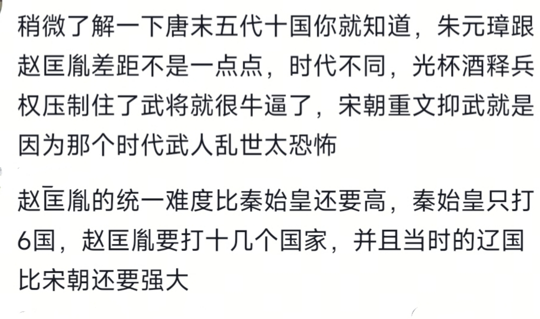 这里最主要的是没能收复燕云十六州,而且定难军、静海军也是没能平定,脱离控制成了西夏和越南。因此,赵匡胤、赵光义两兄弟完成的小统一都不如秦始皇的大统一厉害。