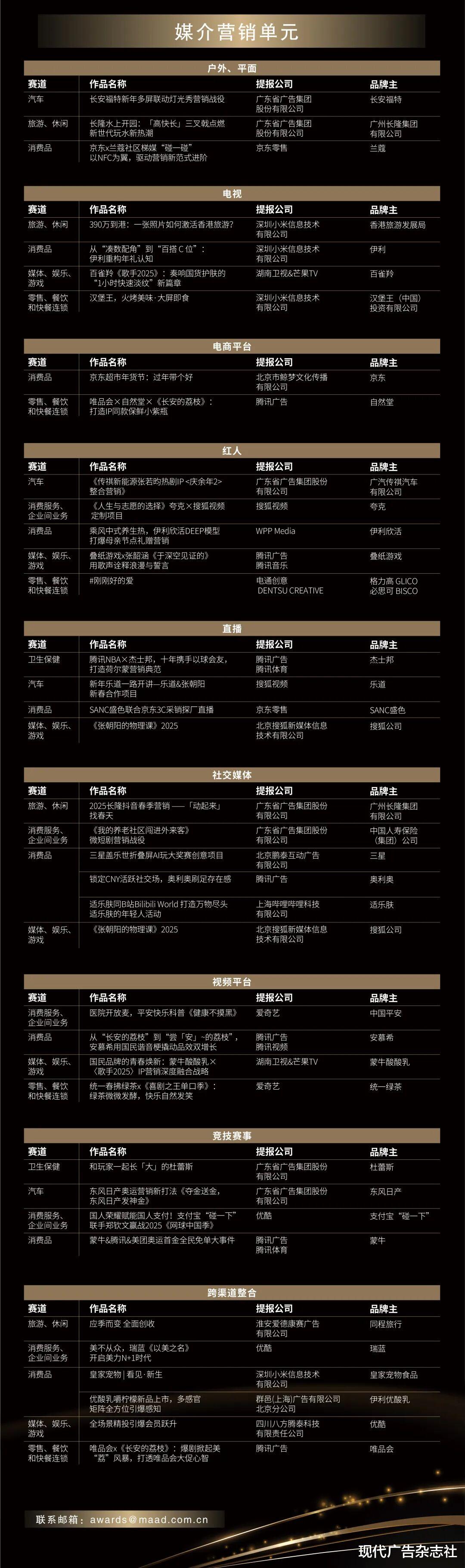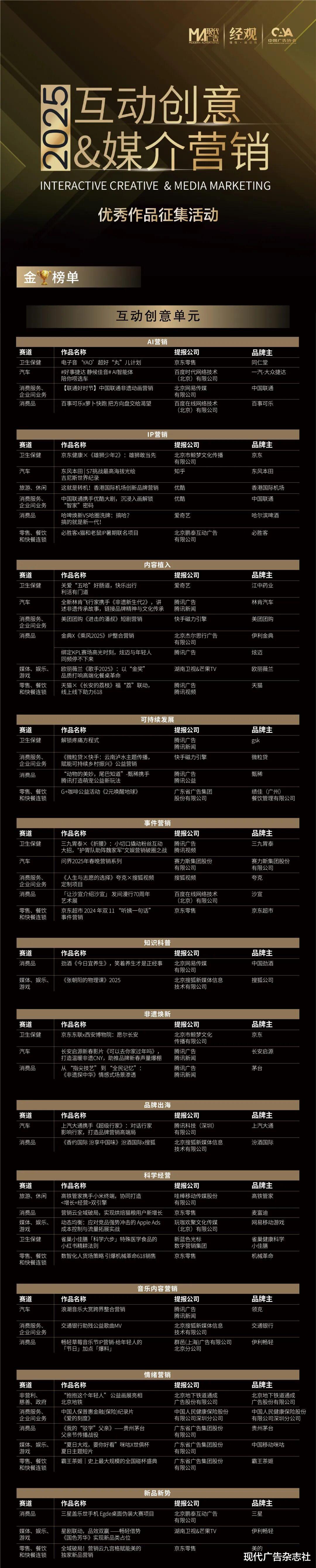 2025互动创意&媒介营销优秀作品征集活动金等级名单公布