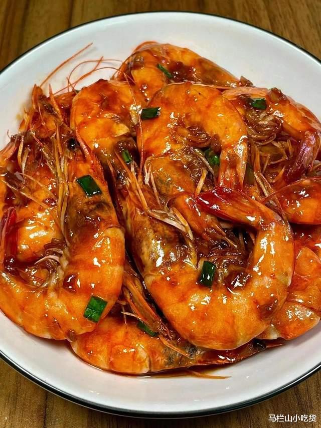 油焖大虾,酱汁浓郁超入味!虾煎至金黄,加生抽+蚝油+糖+少许水,焖3分钟收汁,壳都想啃干净。