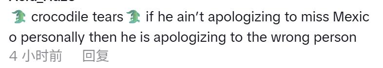 “鳄鱼的眼泪罢辽,你不去跟墨西哥小姐本人道歉,搁这儿演啥呢。”