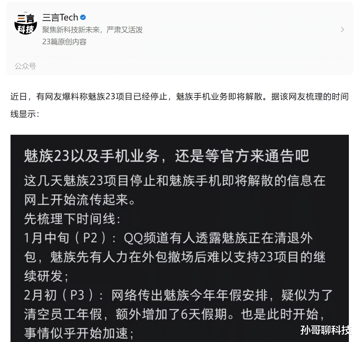 据媒体报道,网友爆料魅族23项目停止研发,魅族手机业务团队即将解散。目前还没有官方消息报道,一切是网上传言,需要自行甄别真实性。