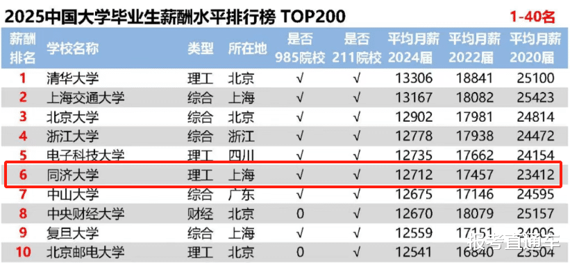 说到底,薪资排名的背后,是城市产业、学校服务、人才实力的三重共振。同济的毕业生能在薪酬榜上持续靠前,既是上海产业生态的赋能,也是该校就业工作的精准发力,更是学生自身实力的直接体现。毕竟,高薪行业从不会为“平庸” 买单,能在这些领域立足的人,本身就是高校人才培养质量的“活名片”。