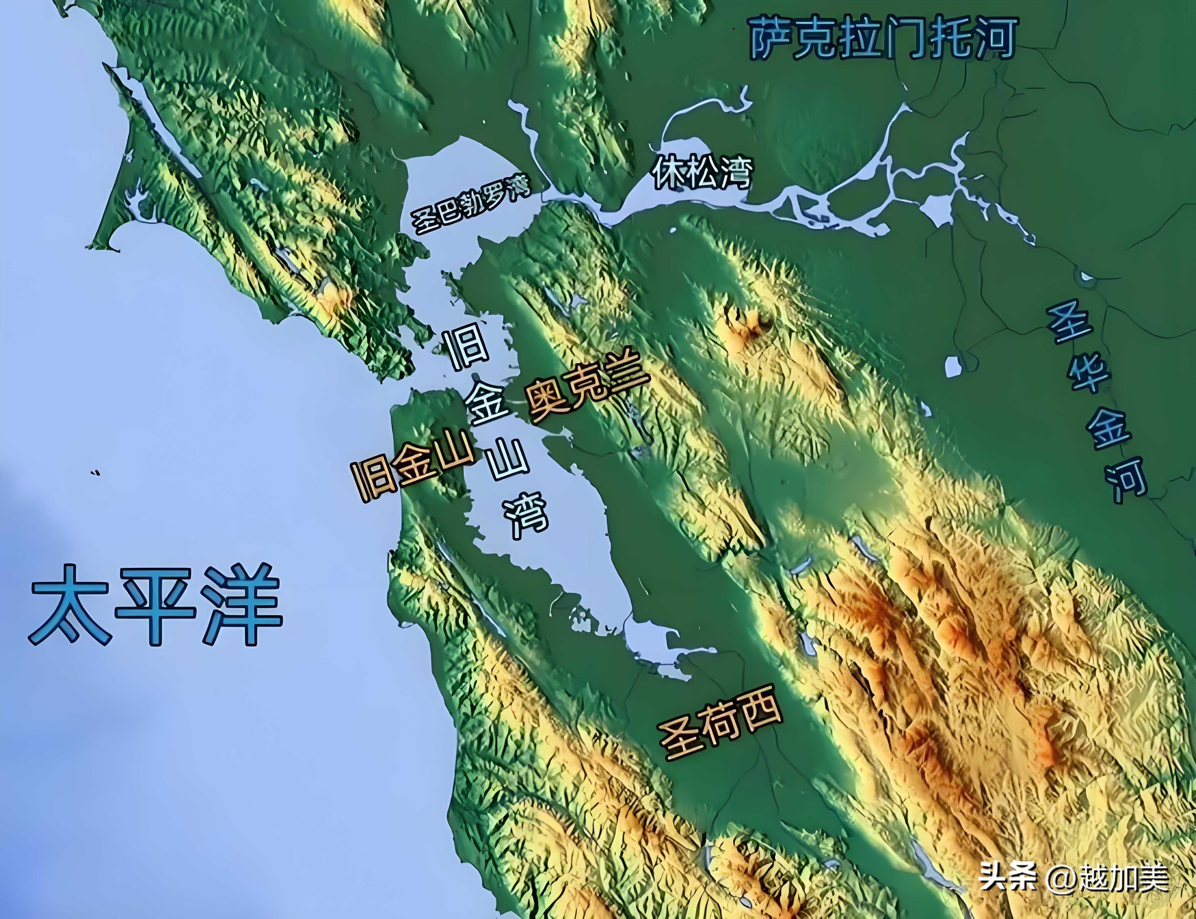 7、美国·旧金山湾:湾区面积1160 km²,平均水深30米,主航道16.7米,最深116米(金门海峡),通过狭窄金门海峡形成天然屏障。