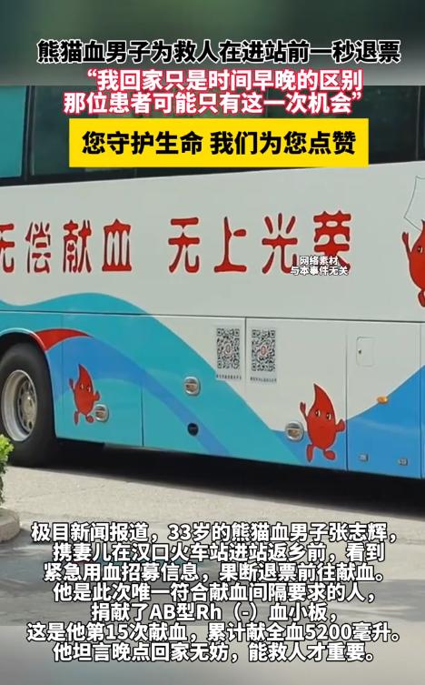 人民网:返乡“熊猫侠”进站前退票献血救人