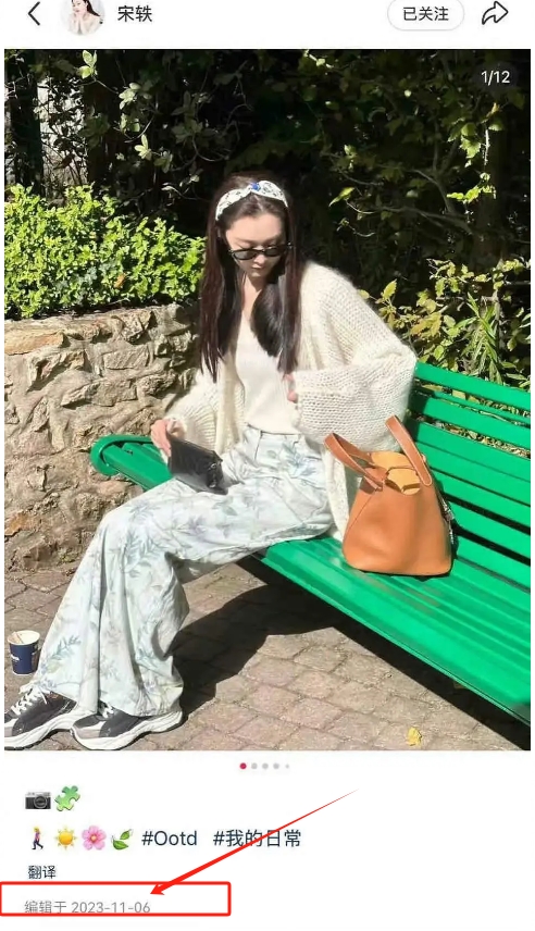根据粉丝晒出的视频截图显示,在2023年11月6日,宋轶的绿椅子照片就在第一页,之后一直在第一页。还有宋轶粉丝晒出去年宋轶粉丝群里的截图,也显示23年11月5日,绿椅子照片就是封面。所以宋轶根本没有重新编辑封面。