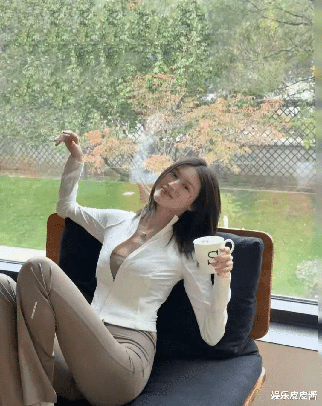 看得出何穗对家中的这个落地窗非常的喜欢,毕竟是摆拍,何穗肯定会在自己喜欢的地方进行拍照,而且在众多的照片中,何穗的背景都是这个落地窗,看得出,何穗经常在家坐在这里欣赏外面的景色。