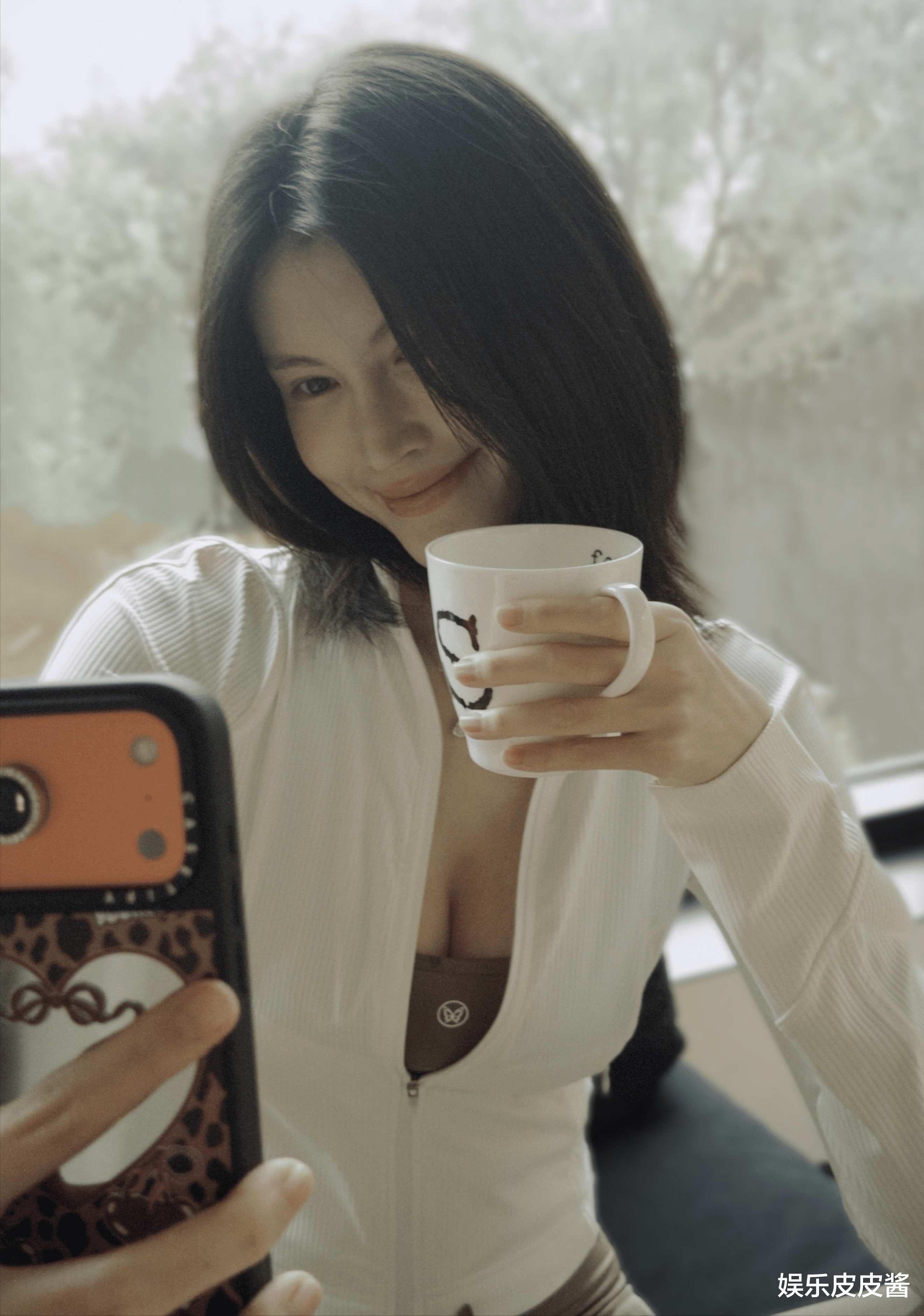 之后陈伟霆还偷拍了一张何穗穿衣服的照片,在紧身衣的附属下,何穗的身材直接有了一个升华,简直和窗外的绿树形成了一幅完美的风景画。