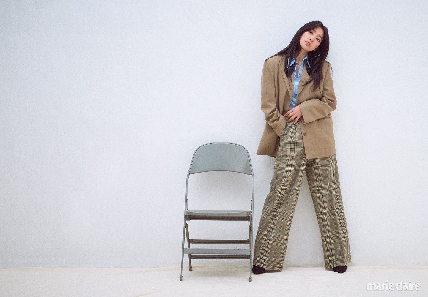 朴信惠marieclairekorea 3月刊杂志写真,终于回归长发,因此在穿搭上也作出相应调整,一头披散的长发很自然垂在两肩,这就与阔版西装的慵懒风搭配得如出一辙了,给人一种酷酷的撩人感觉。整套写真就是以阔版西装为主题,偏复古的色调让整个大片充满着怀旧感,朴信惠一身米黄色西装十分醒目。