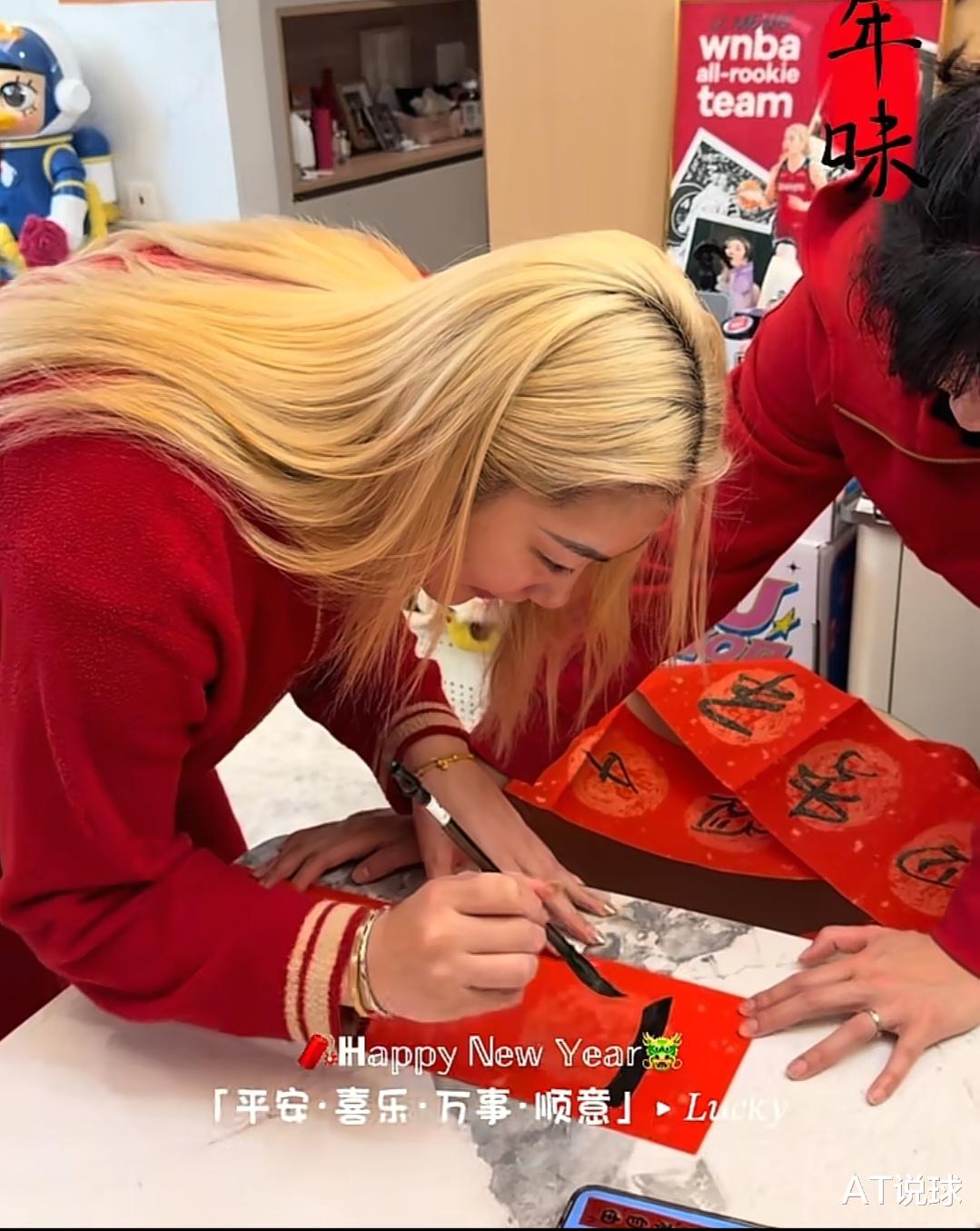 女篮李梦更新社媒晒美照,一身红衣贺新年,黄色发型太抢眼