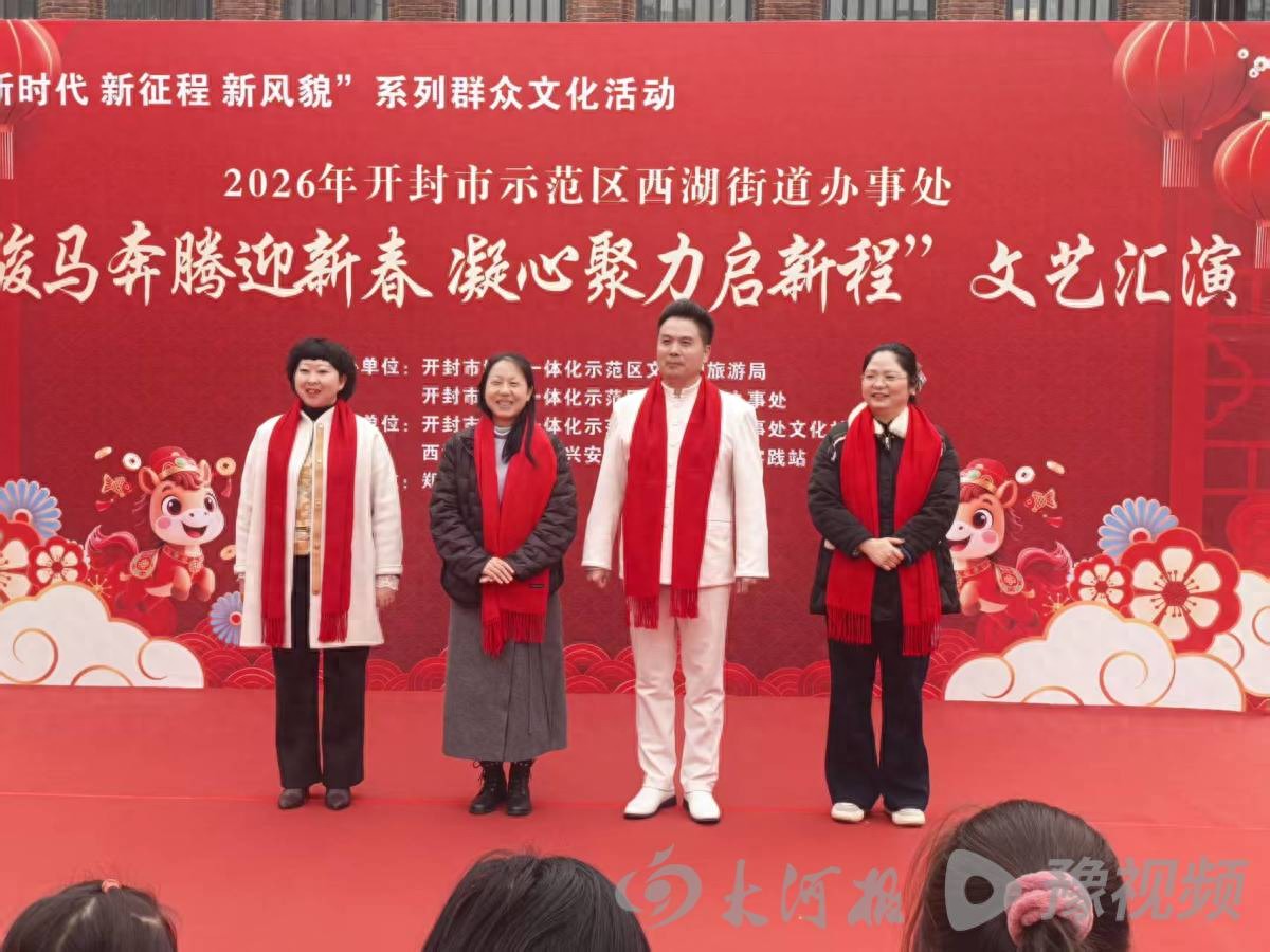 红灯笼映笑脸,年味浓溢社区。2 月 10 日,由开封市示范区文化和旅游局、西湖街道办事处联合主办,西湖街道办事处文化站、兴安社区承办,郑开碧桂园物业协办的 “骏马奔腾迎新春 凝心聚力启新程”—— 我在新时代文明实践站过大年文艺演出系列活动精彩启幕。辖区 200 余名居民群众、志愿者欢聚一堂,在逛市集、赏节目、迎福气的热闹氛围中,共赴一场充满文化气息与邻里温情的新春之约。