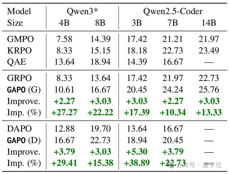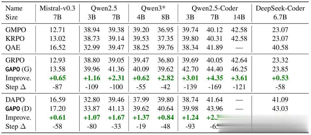 此外,团队的GAPO方法对baseline的提升也比较稳定。