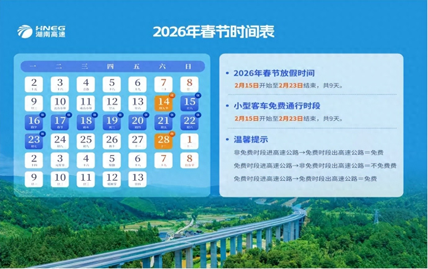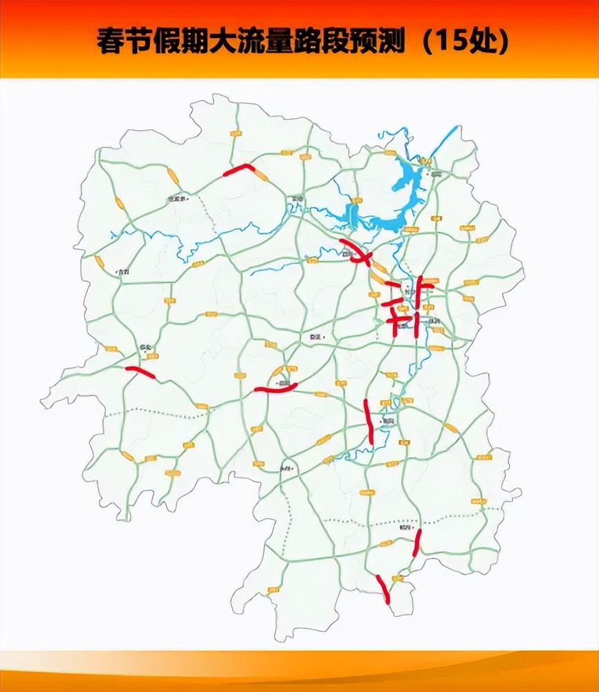 2月18日至2月20日(正月初二至初四),路网车流增长迅猛,局部路段可能出现车流井喷,以短途探亲访友及旅游出行为主,拥堵时段主要集中在9时至11时、14时至18时,重点路段、枢纽互通、隧道、市州城市周边路网易发生缓行和拥堵。