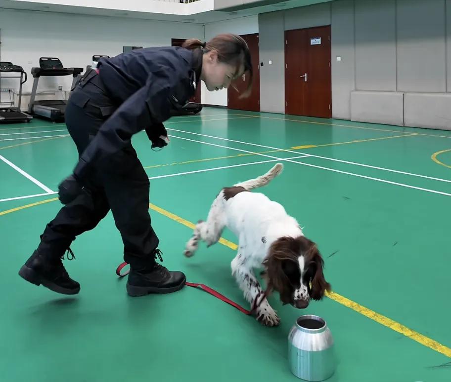 史宾格作为一种中小体型犬种,常用于血迹、物证的搜索,以及承担搜毒、搜爆等任务。选拔时,警官们看出了未央成为搜爆犬的潜力:兴奋、有选取欲、有胆量。