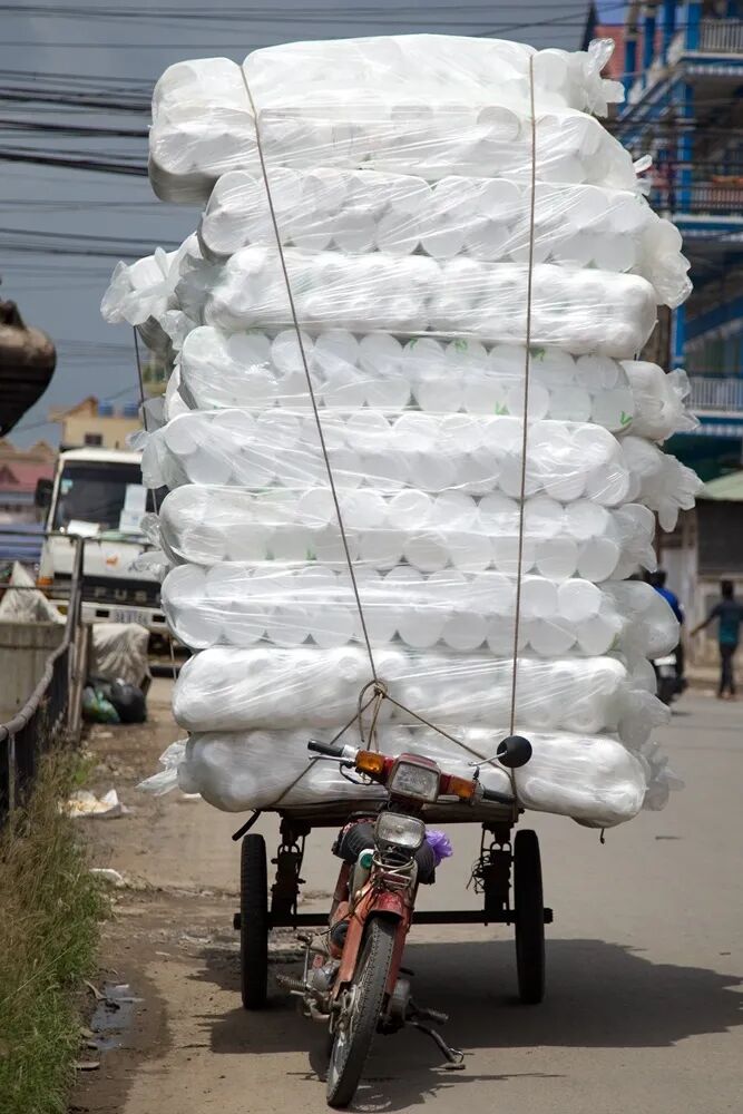 12.人力三轮也特别能装,关键是上面的人居然还能踩得动,真是神力啊!