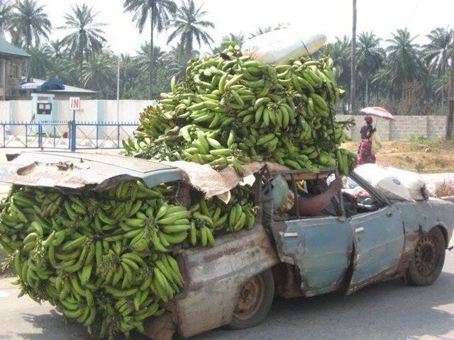 1.非洲的一辆快要散架的皮卡,依旧在超负荷的运输着香蕉,超载严重到地盘都快贴地了,看着都不由同情起这辆皮卡了。