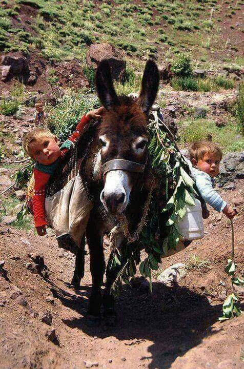 9.毛驴拉货是个不错的选择,拉小孩就有点抽象了,这不妥妥地为难毛驴嘛。