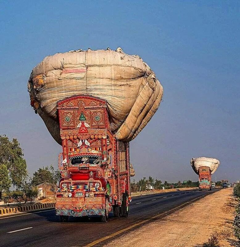4.巴基斯坦货车很有艺术感,但是超载也是非常狠的角色,个个装得跟个大头娃娃似的,从它身边经过都害怕。