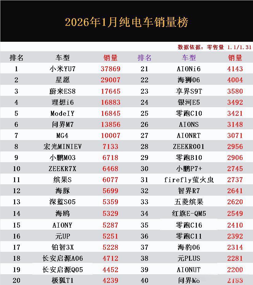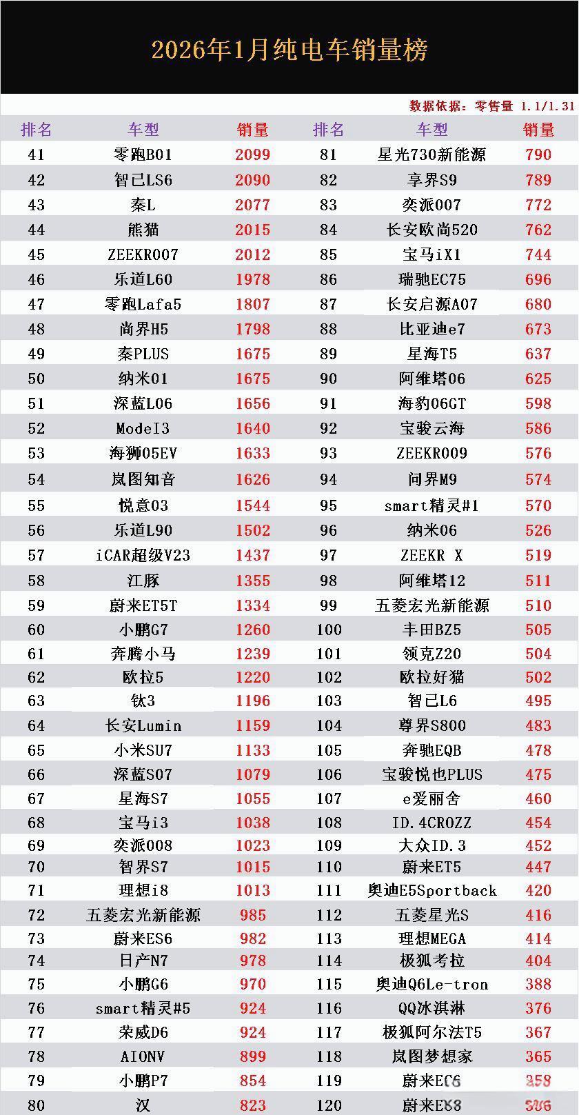 刚刷到一月份纯电车的销量感觉这个开门红成色有点不足啊,不是都说购置税减半了嘛,怎么从数字上看市场反而静下来了。