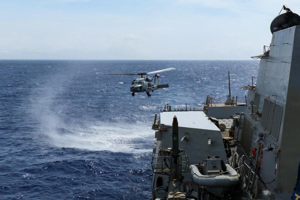 当天上午11点上下,在澎湖列岛西北方向大概120海里的海域上空,澳大利亚海军那艘军舰上,一架MH - 60R“海鹰”反潜直升机轰鸣着起飞了。