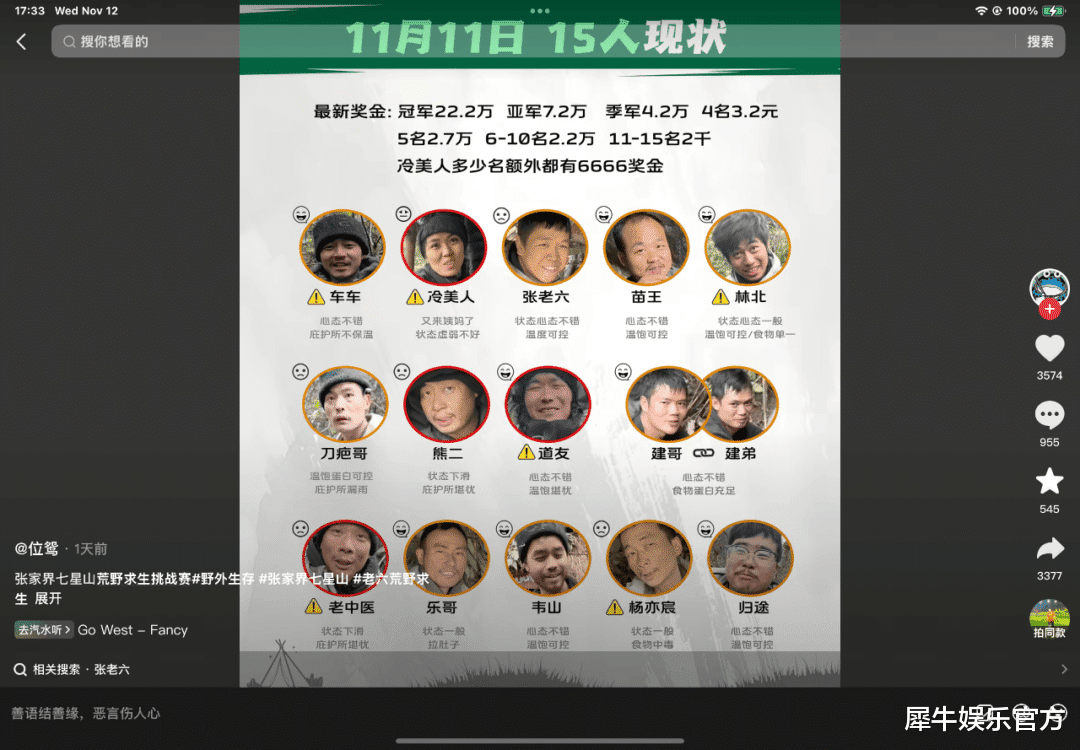 所以说,当真是100个狠人在张家界荒野直播给国综上了一堂“内容制作课”和“商学院课程”,犀牛君很期待后续国综界如何跟进这一短视频热点拿出与之对抗的硬核项目。