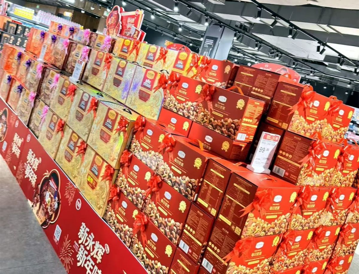 开车也就是20分钟就来到了永辉超市,因为单位是合作的关系,所以每年过年发的购物卡都是永辉超市的,来吧,展示了,各种礼盒,各种坚果,各种零食,最后也不忘记选一副春节的对联