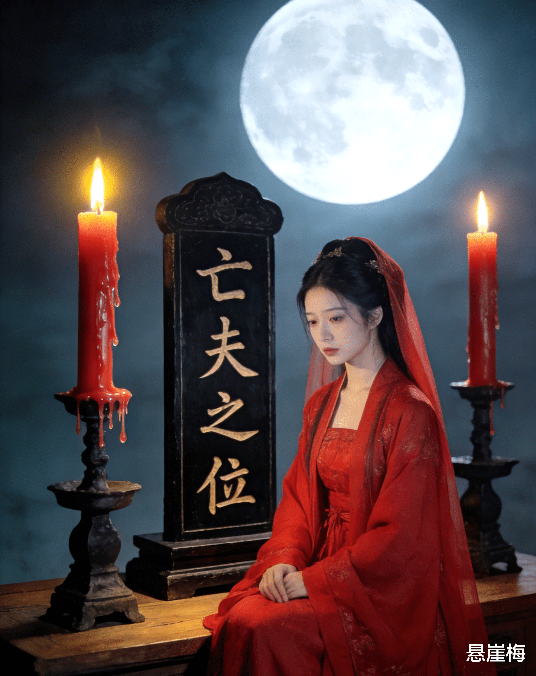 红烛燃到过半,烛泪顺着鎏金烛台蜿蜒而下,像未干的血,滴在案上那方灵牌上——“亡夫王鉴之位”,五个黑字被烛火映得忽明忽暗,透着刺骨的凉。我穿着大红嫁衣,凤冠上的珠翠硌得头皮生疼,指尖抚过冰冷的灵牌,喉间的哽咽压得我几乎窒息。
