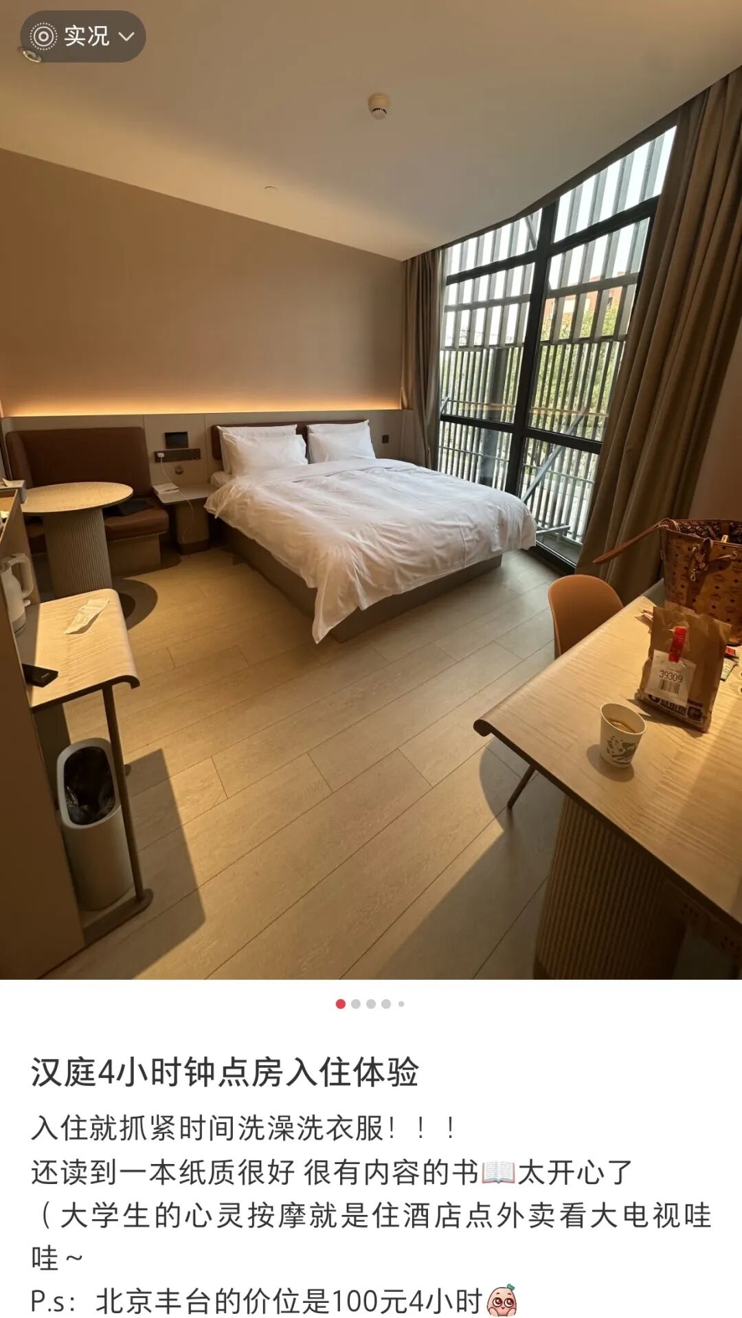 我听过最有趣的钟点房用途,是一位自由职业者租来拍产品视频:“家里光线不好,背景杂乱。钟点房干净整洁,自然光充足,4小时拍完就走,比租影棚划算多了。”