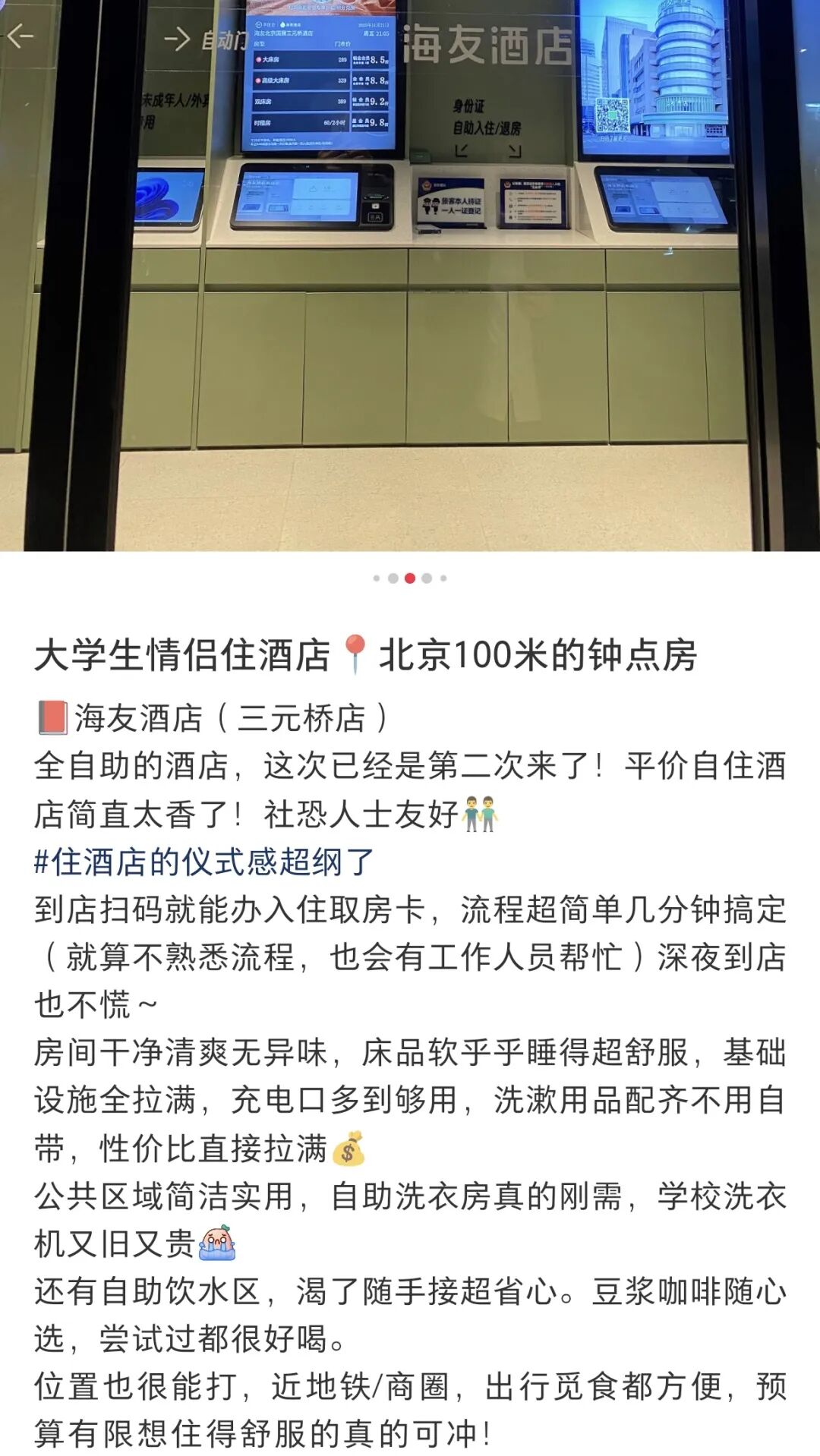 有意思的是,本地年轻人正成为新增长点。家里装修临时住几天、朋友聚会想要私密空间、情侣周年纪念想要仪式感,甚至只是需要一个没人打扰的地方准备考试——钟点房因灵活私密而备受青睐。