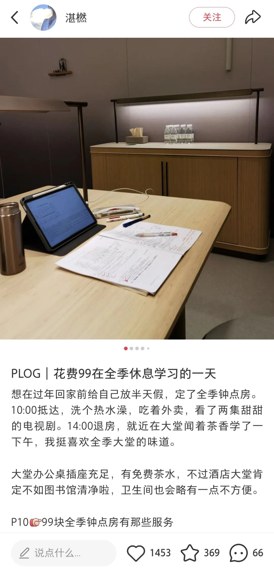 还有更绝的:考研二战学生长期租用白天时段复习;直播主播用来做临时直播间;穿搭博主用来拍换装视频;小团队用来做头脑风暴;甚至有公司用来做新员工面试场地。