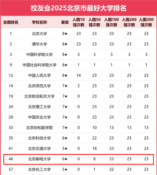 而在2025校友会北京市最好大学排名里,北京邮电大学以第13位的成绩,在这场高手过招里划出了独属于自己的赛道。看似不算最靠前的位次,其实藏着北邮 “专而精” 的底气 。