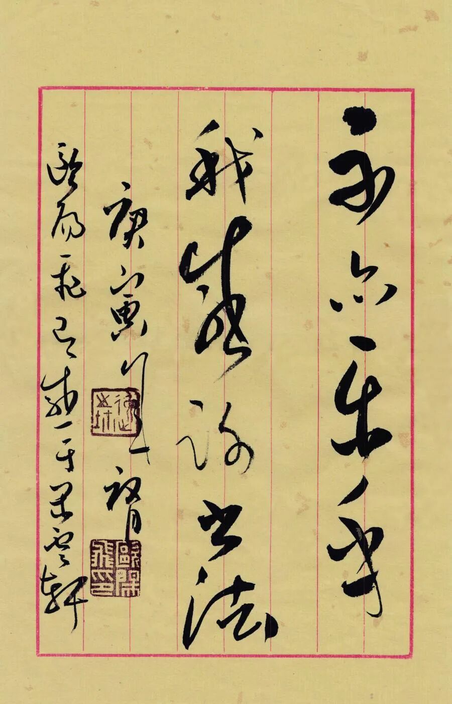 原本为自己的占卜还较为忐忑,当看到欧阳先生一副自撰“钟晋人笔韵,崇明清章法”草书对联的时候,我释怀了,原来先生是有先见之明的,那就姑且当作知音共叙吧!