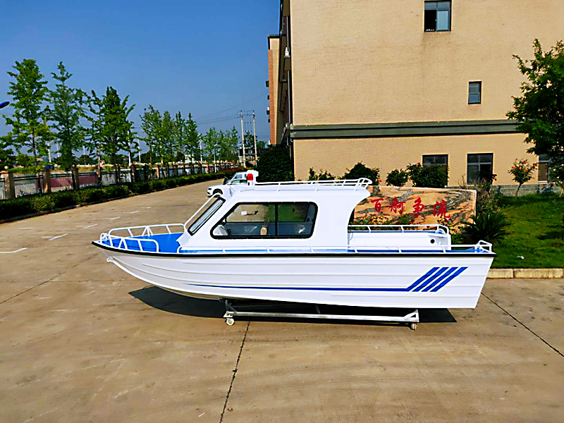 造型与功能灵活:可设计为休闲游艇(带座舱、遮阳棚)、钓鱼船(带钓位、活鱼舱)、工作船(带甲板吊、储物空间)等,焊接工艺能实现复杂结构的拼接,无需像玻璃钢船那样依赖 “模具”,小批量定制成本低。