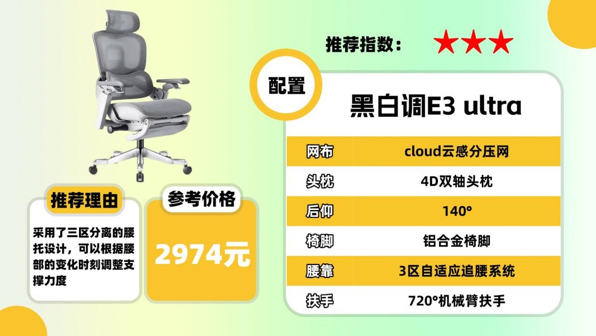 ②黑白调E3 ultra人体工学椅
