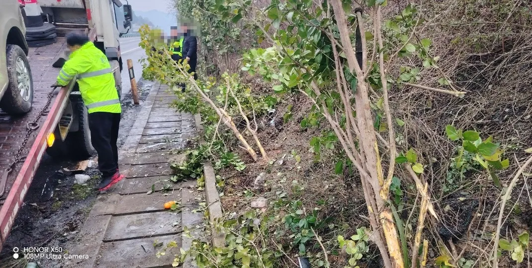 2月9日13时30分,遵义市公安局交通管理支队高速三大队接到驾驶人报警,称其驾驶车辆沿玉新高速公路由新舟往湄潭方向行驶,当行至湄潭南服务区前行约2公里的位置时发生单方事故,车辆受损较为严重,无人员伤亡,请出警。