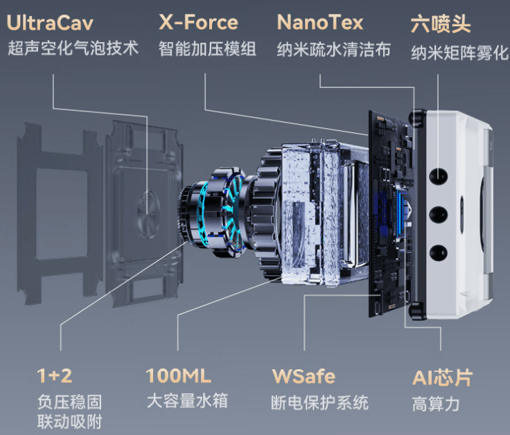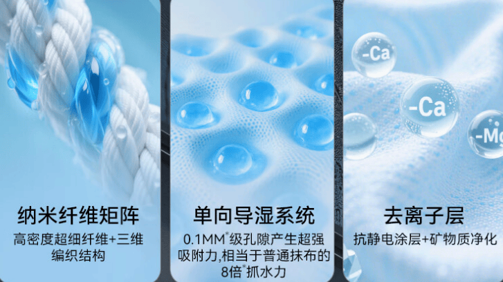 擦布选纳米疏水/超细纤维款,水箱≥80ml(大户型选≥100ml),优先干擦+湿擦双模式,多喷头雾化喷液比单喷头更干净。