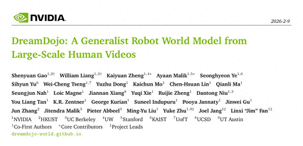 近日,英伟达(NVIDIA)与其通用具身智能研究团队(GEAR)共 30 个作者联合发布了一项代号为 DreamDojo 的最新研究成果,试图从根本上影响机器人学习物理世界的方式。