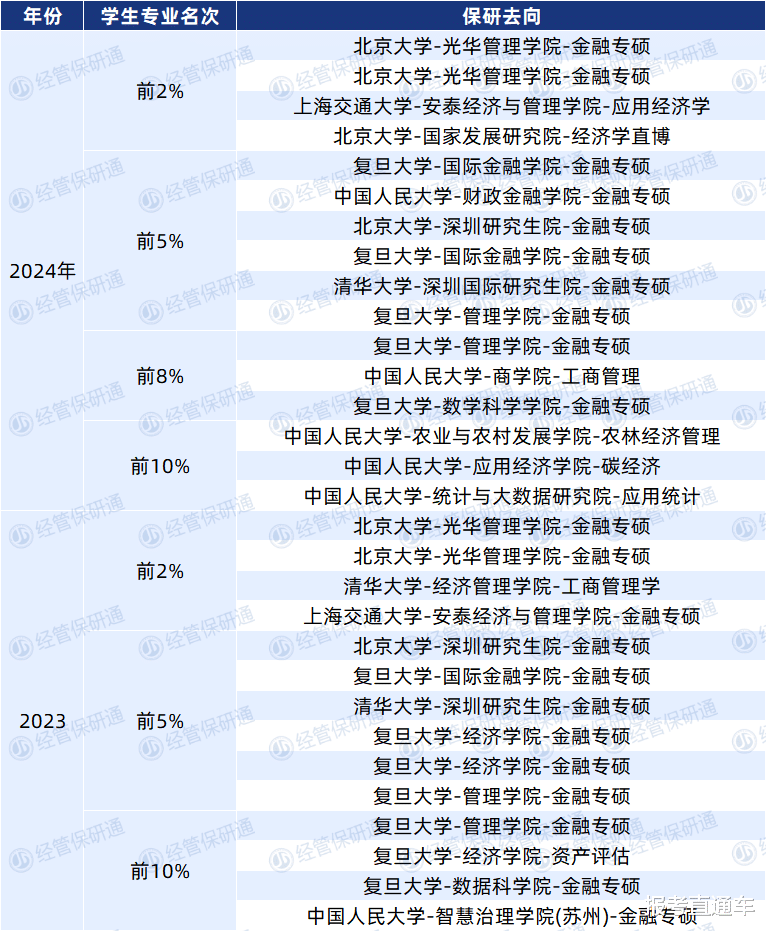 如果说上财是财经圈的门面,那金融学院就是门面里的镇店之宝,甚至可以被戏称为通往“清北复交”的 VIP 候机厅。2024 年金院的保研战绩简直可以用炸裂来形容,在 59 位获得保研资格的同学里,有 16 位直接杀进了北大、清华、复旦、人大以及上交这五所顶级名校。这种接近三成的外保 Top 5 比例在全校简直是独孤求败。