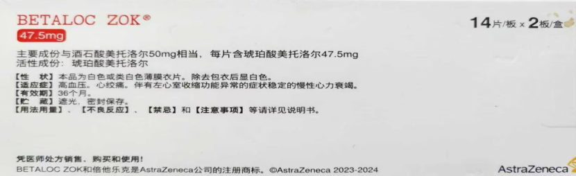 这种药物是用于治疗高血压、心绞痛的β受体阻滞剂,每个药盒装有28粒药片,每粒50毫克。