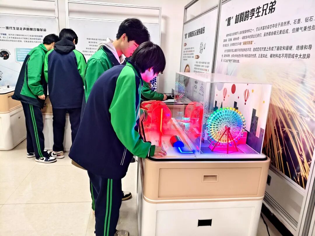 此次巡展精心设置三大主题展区,打造全方位科学探索空间。"科技慧生活"展区聚焦人工智能、物联网、智能家居等前沿科技应用,通过机械智能识别、VR虚拟体验、智能家居模拟等展项,直观展示科技如何重塑日常生活,让观众切身感受科技发展带来的便捷与智能;"美丽数学"展区则打破传统数学学习的枯燥印象,通过数学艺术、几何模型、可视化函数等形式,将抽象的数学原理转化为生动有趣的互动体验。观众可在游戏中探索黄金分割的奥秘,在模型搭建中理解几何图形的变换,感受数学逻辑之美与实用价值;"改变世界的材料"展区呈现了金属、碳、塑料、纤维、玻璃、陶瓷等改变世界的基础材料世界。通过实物展示、模拟实验、立体演示等方式,呈现材料从基础研究到产业应用的全链条发展,揭示材料科学如何推动世界改变与发展,展示了新材料科技在各领域中的革命性突破。
