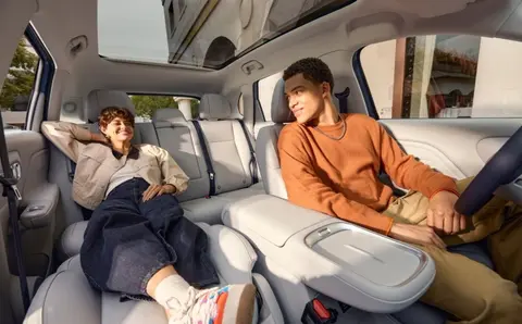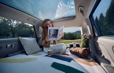 同时,年轻家庭还在意的空间,零跑B10更是藏了惊喜。前排座椅能直接打平变移动大床,午休蜷着睡毫无压力;后排坐两个成年人加个儿童安全座椅也不挤,车顶平直的设计让180cm的乘客头部还能留一拳距离。后备箱常规状态下装得下婴儿车+露营装备,放倒后排座椅后,甚至能塞进折叠自行车,周末短途出游根本不用纠结带啥,像这次国庆黄金周,我们一家七人一起出行,几乎该带的都带好了,让隔壁家的好生羡慕。