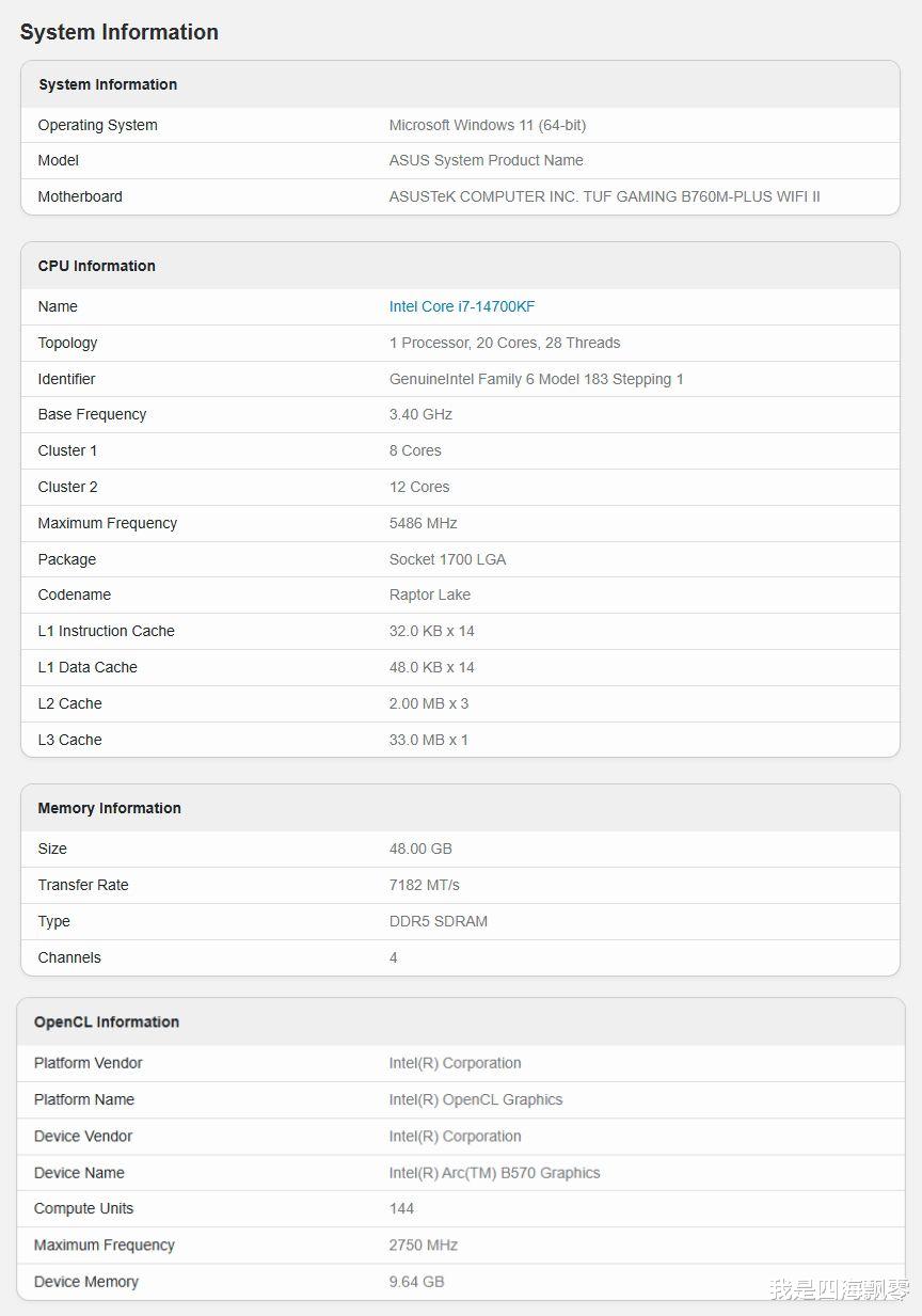 这套配置以Intel Core i7 14700KF搭配蓝戟ARC B570显卡,性能强劲,应对主流游戏和专业软件游刃有余;华硕B760M主板提供稳定支持,48GB高频内存与2TB PCIe 4.0 SSD保障数据读写速度;散热、电源、机箱等配件搭配合理,保障系统稳定运行。但ARC B570显卡在生态和部分游戏优化上可能不及竞品 。