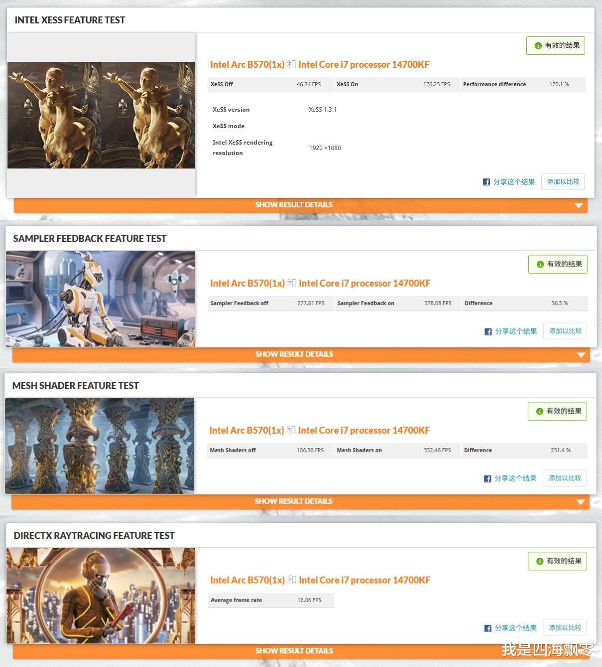 FIRE STRIKE EXTREME、FIRE STRIKE ULTRA、SOLAR BAY、PORT ROYAL、STEEL NOMAD LIGHT、STEEL NOMAD、SPEED WAY项目中,Intel Core i5 13600KF处理器搭配蓝戟ARC B570 Photon 10G W显卡的得分高于Intel Core i7 14700KF处理器搭配蓝戟ARC B570 Photon 10G W显卡。