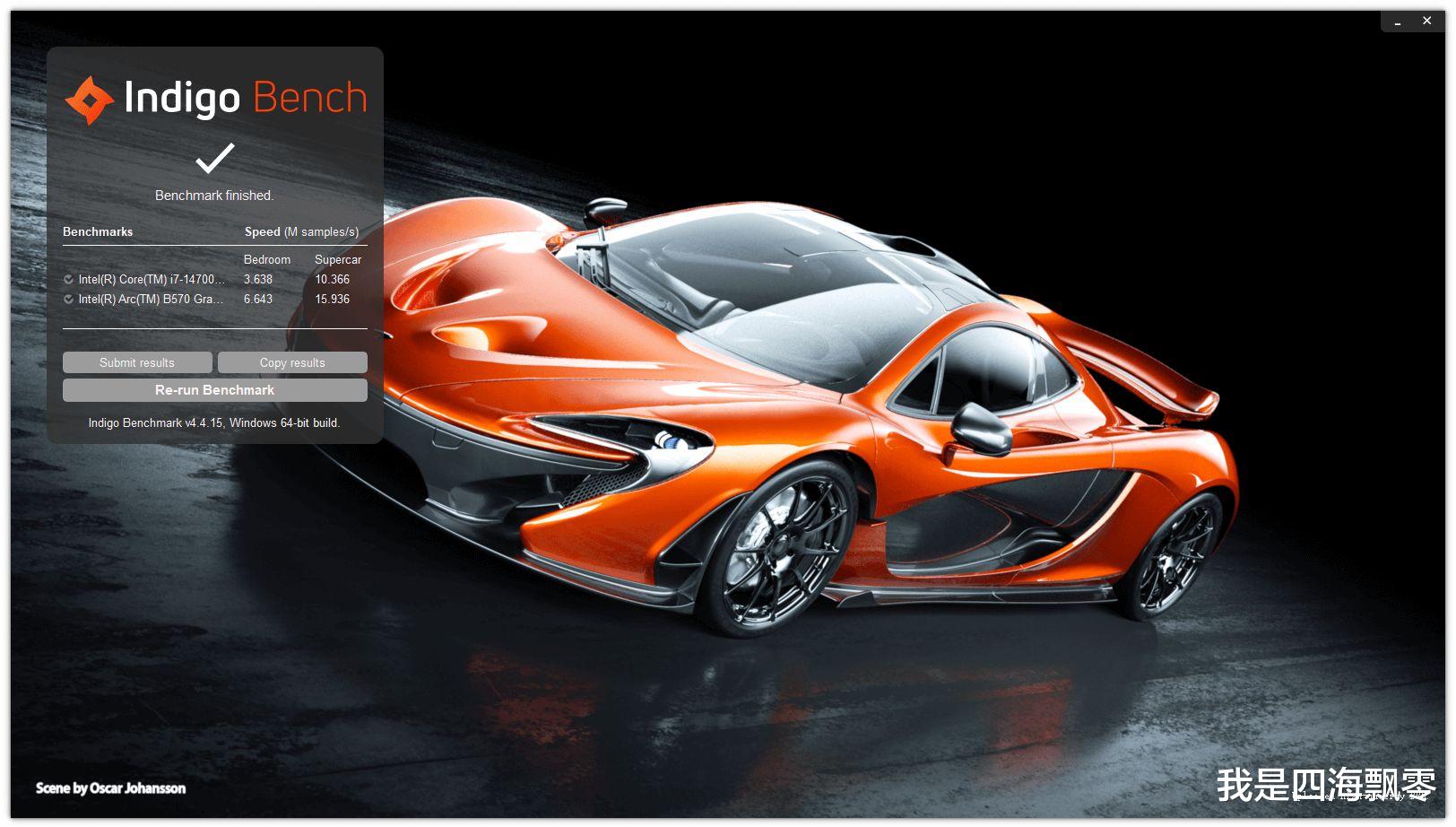 使用Corona 10 Benchmark软件测试,得分:10622707,使用Indigo Bench软件测试性能如图所示。