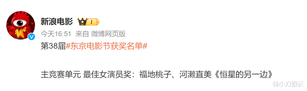 就因为王传君拿到了东京电影节的影帝,作为女主的白百何这几天没少发些阴阳怪气的内容。