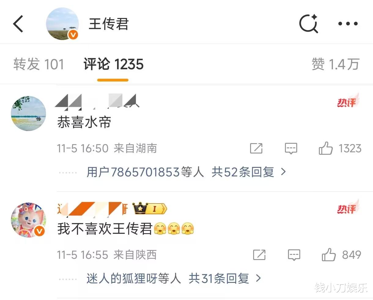 更搞笑的是,有人说王传君之的影帝是靠暗箱操作拿下来的,是资本要捧他。王传君的评论区也涌进了一堆白百何的粉丝,大骂他是水帝。